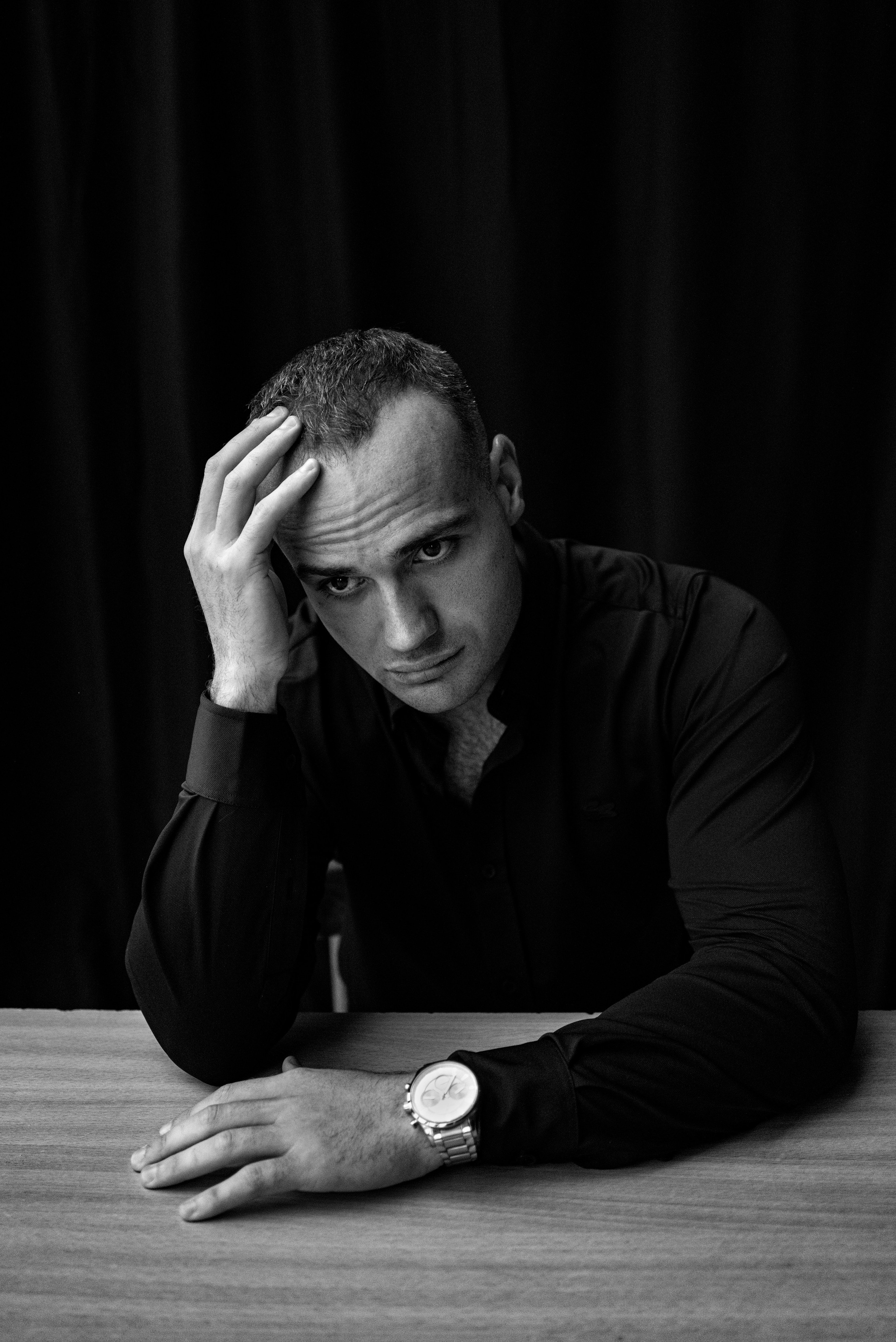Черно-белый мужской портрет от Евгении Безрук, профессиональный фотограф. Актер Роман Васильев